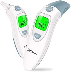 SVMUU Termometro Digitale Fronte e Orecchio, Termometro a Infrarossi, Allarme Temperatura Elevata, Multifunzione 4 in 1 per Bambini, Adulti e Oggetti, Approvato CE/ROHS/FDA